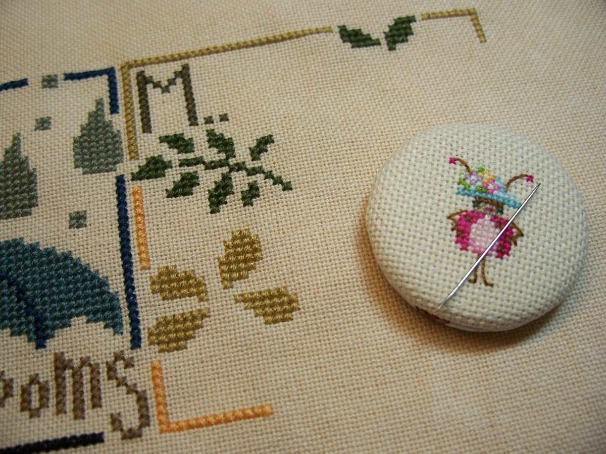 Beautiful progress on May! I just love that ladybug needleminder--too cute.