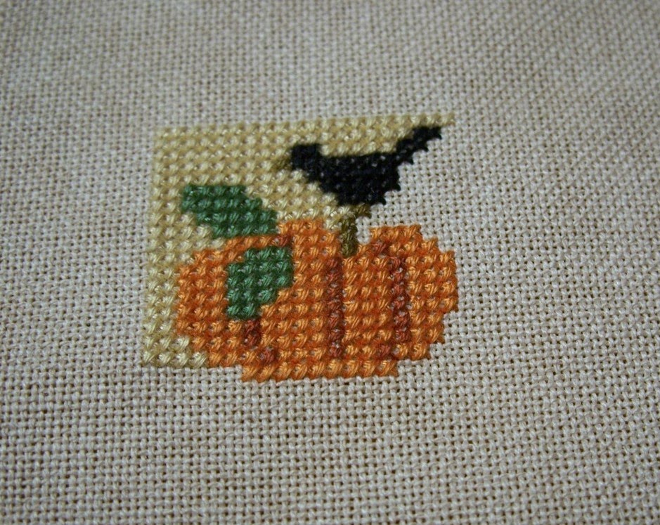 Congratulations to Becka! Aren't you the sneaky one? :o) Cute little pumpkin - aren't pumpkins fun to stitch?