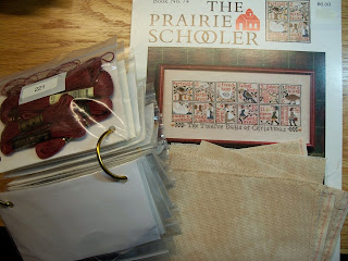 Sharon, I've been teasing you with hints about my new project. Okay, I'll stop now! I finished kitting up and started stitching yesterday. I'm going to stitch Prairie Schooler's