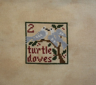 And here is my start! Wow, this is a really fast stitch. I started last night and only had a short time for stitching. It would be nice to have these all done in time for the Christmas tree this year but I know it won't happen. I'm not a fast stitcher or finisher. Plus, I work full time. I thought about making this my 2012 project and stitch & finish one ornament each month, very doable for me. But I couldn't wait to start. I just about went insane the weeks I waited to start Crabby All Year, that time. I'm not set up for waiting, I guess. I want it NOW!