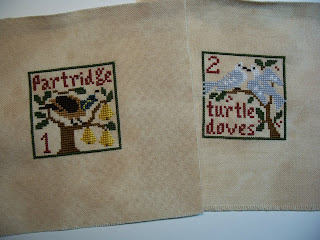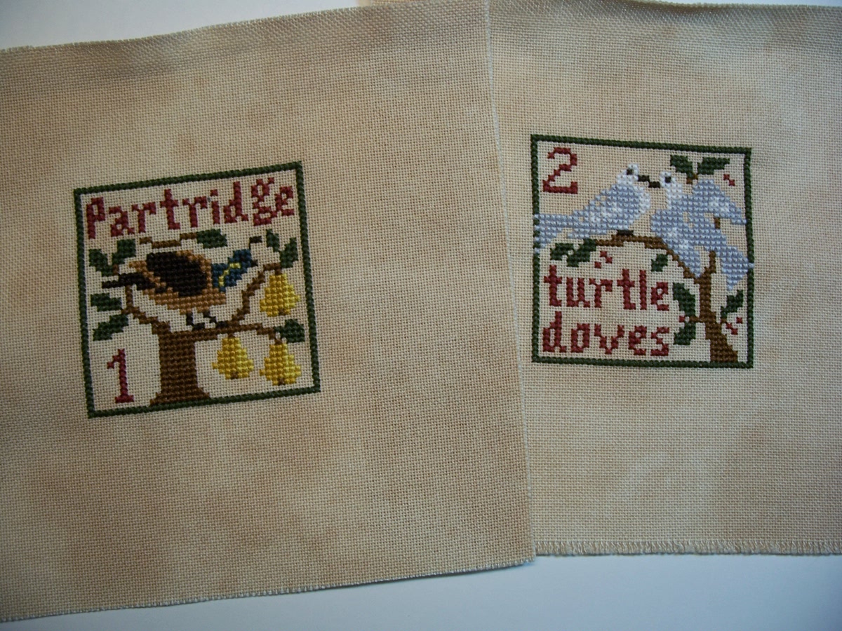 Twelve Day's of Christmas. Each square as an individual ornament. I've been looking for that perfect "12 Days" chart and have even bought several but they were either too big (I don't want 5x7 inch ornaments) or charted as a group only. I was so pleased to find this design.