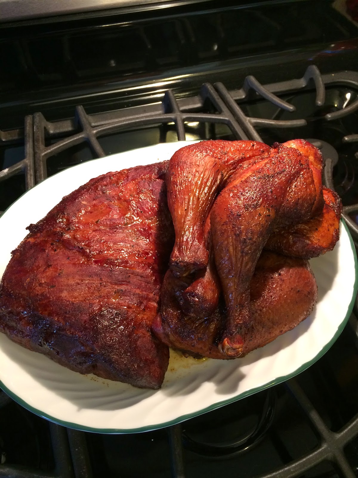 I had to share the awesome food Dash smoked yesterday...chicken quarters and a beef tri-tip. Oh My Word that man can cook! The beef was medium rare and so tender and juicy and the flavor was divine. I'm such a lucky lady!