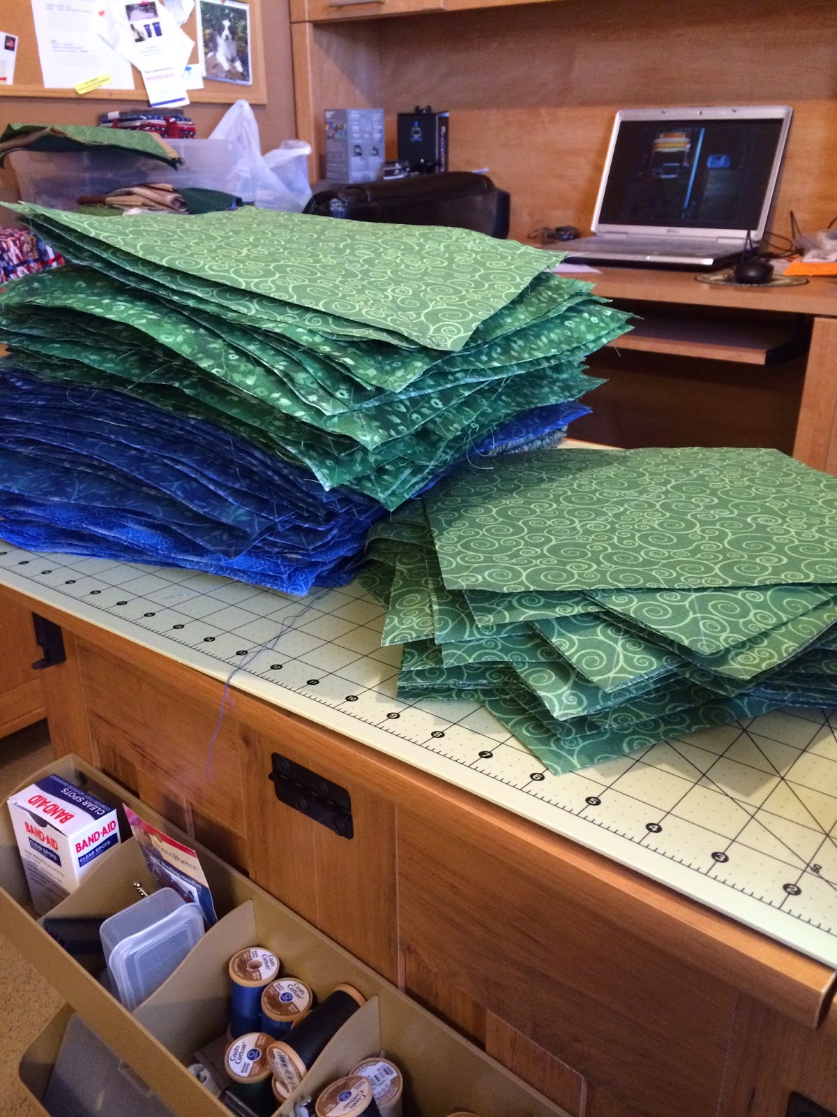 I laid them all out in the pattern we designed together. Then, I turned all the blue "wave" squares going the same direction! I didn't even really notice they were "directional" until I looked at the photo!