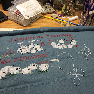 A few stitches on les moutons is better than nothing and they all count towards an eventual finish